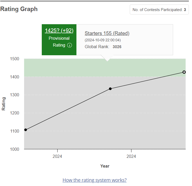 as you can see my previous rating was 1425 but when i was giving my 4th contest , my graph starts with 1333 and goes to 1405 , which is wrong progress. kindly see this and help me please as soon as possible