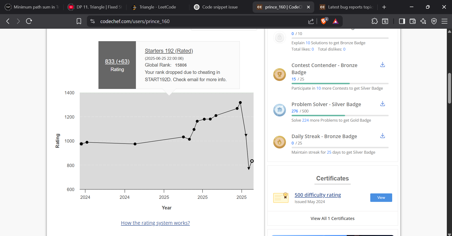 I hope you are doing well. I am writing to bring to your attention a recurring issue with my CodeChef account.