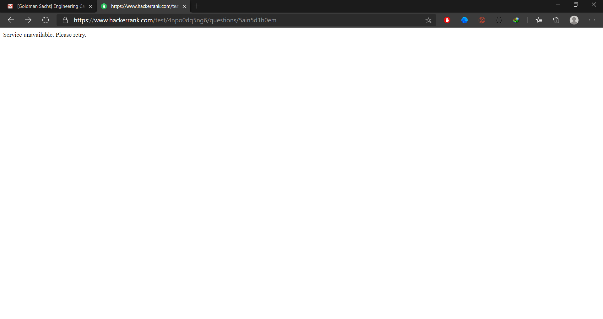 While i was giving my Goldman Sachs Aptitude Test on Hackerrank I got an error saying “Server Unavailable. Please Retry.” and was not able to complete my test. I want to know if anyone else faced this problem during there test.