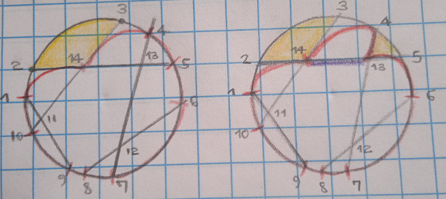 In the figure of the left, the face (2,3) is closed and a new region (2,3,14) is discovered.