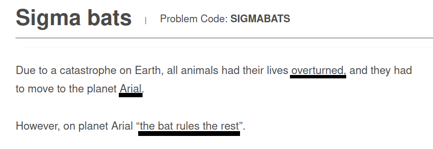 - “bat rules the rest” → We know that a “bat” at “rest” is upside-down