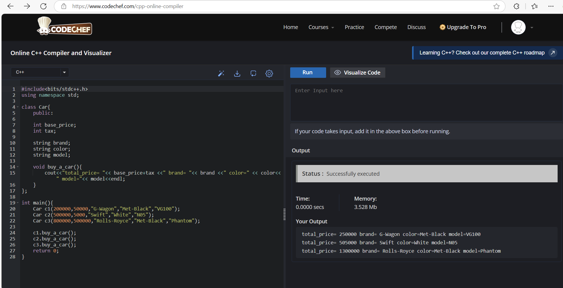 I found an issue where a C++ program compiles successfully on [Code Chef] but should logically fail due to the absence of a required constructor.