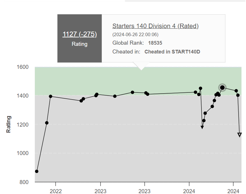 I solved all the problems on my own. I never looked at anyone else’s solution, but my rating has fallen on CodeChef starters 140 for the second time. Please help me resolve this issue. I am currently in my final year of B.Tech, and being caught as a cheater would severely affect my placement opportunities. CodeChef is the only platform where I participate in contests. Therefore, I request you to verify my account