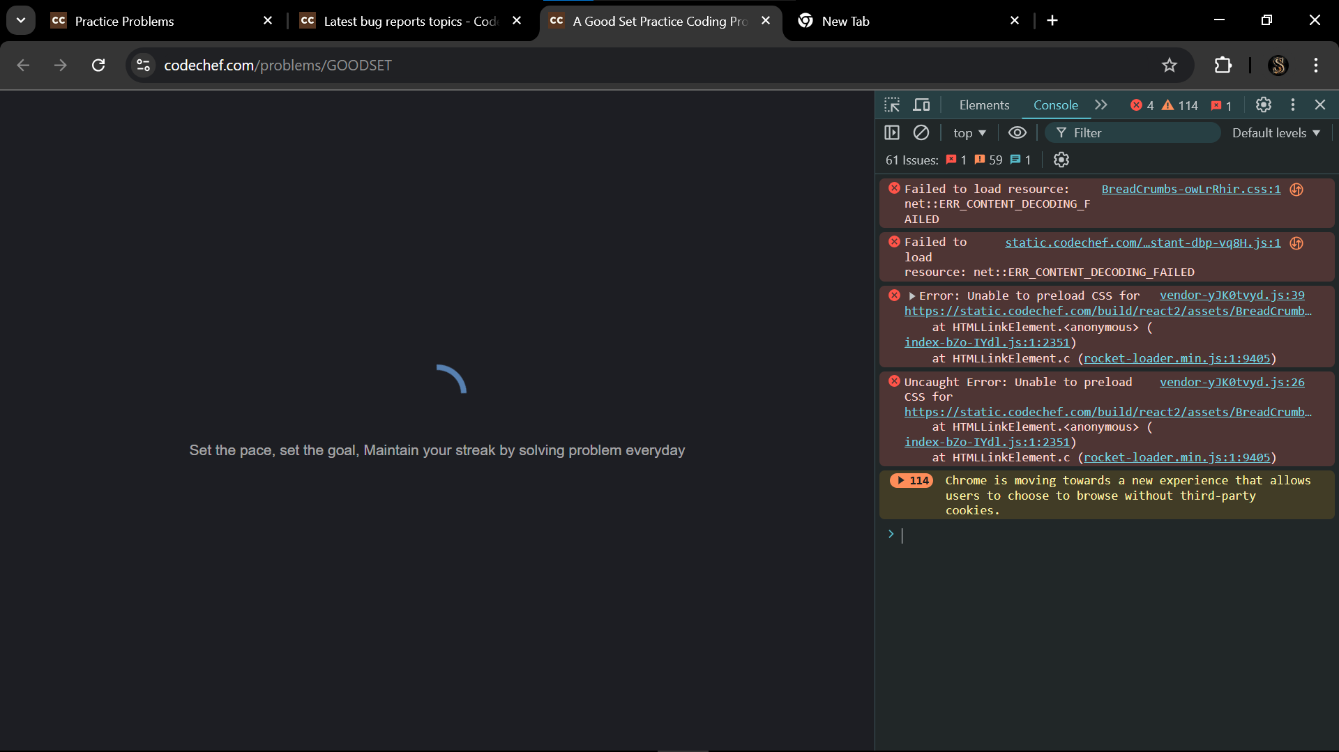 vendor-yJK0tvyd.js:39 Error: Unable to preload CSS for https://static.codechef.com/build/react2/assets/BreadCrumbs-owLrRhir.css