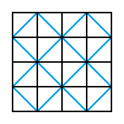 In this whole explanation, by squares I mean the squares of area 2 unit^2 formed by the blue diagonal lines only.