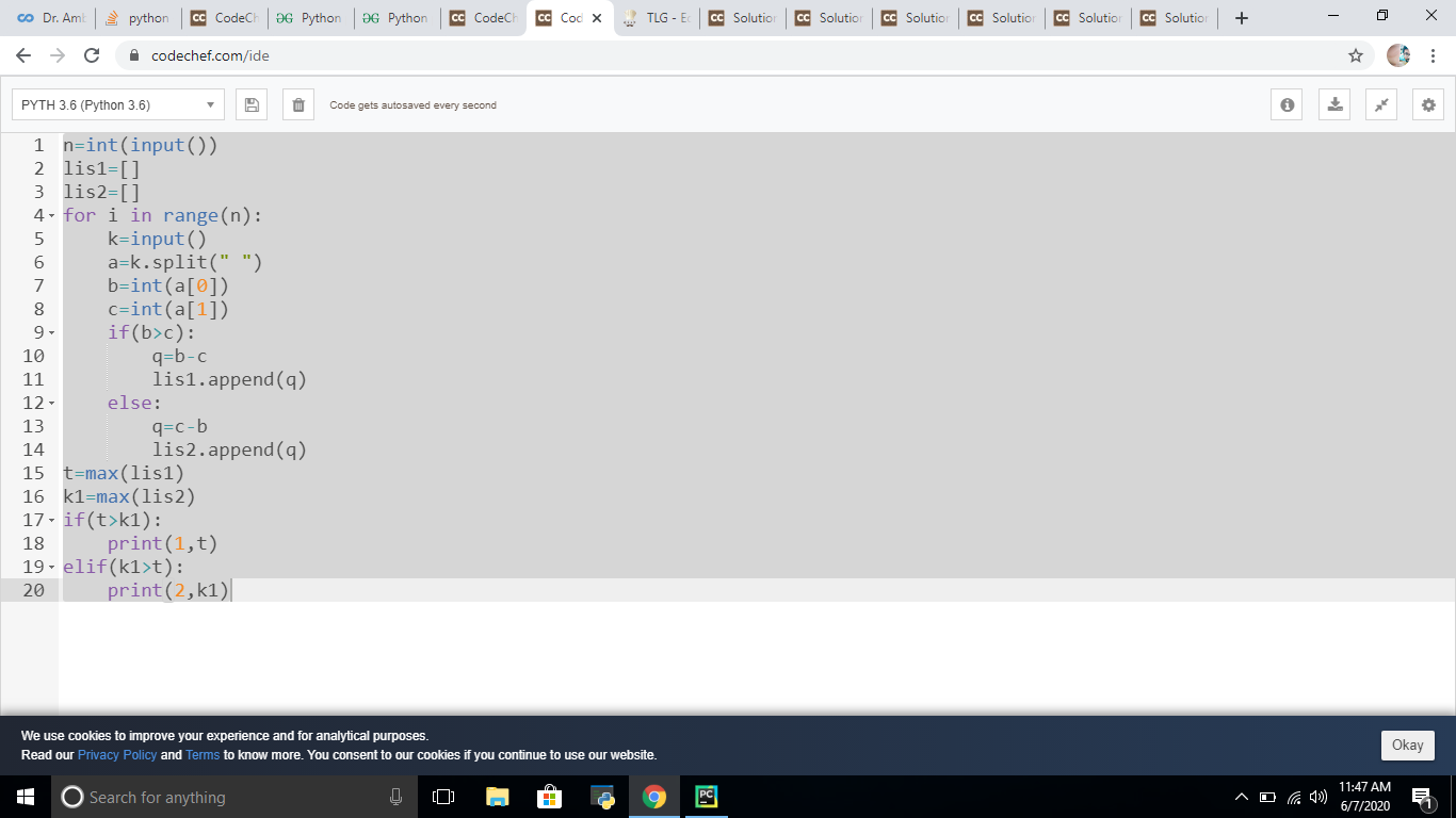 what is wrong with my solution because on every input it is giving right answer but during submission of solution it is showing wrong answer
