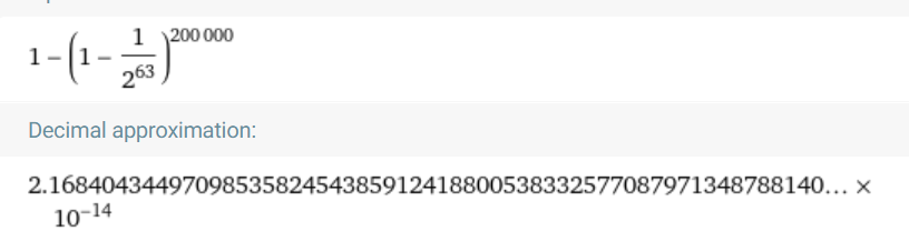Its on the order of 10^{-14} for 2 \times 10^5 queries.