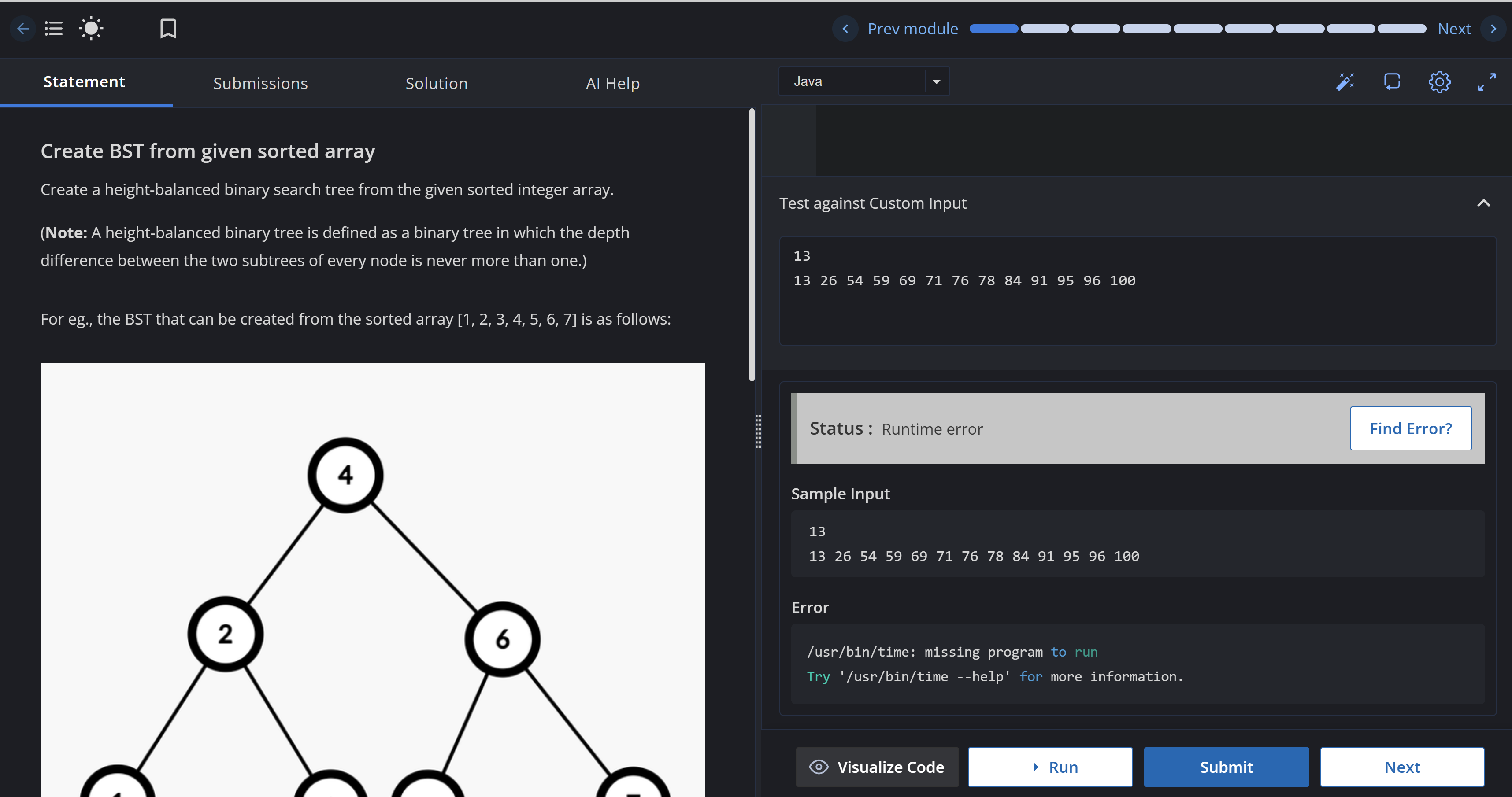 I completed the entire Tree module, but just because I am getting the following error, it’s not 100% complete. The code is correct, but an issue with the application.