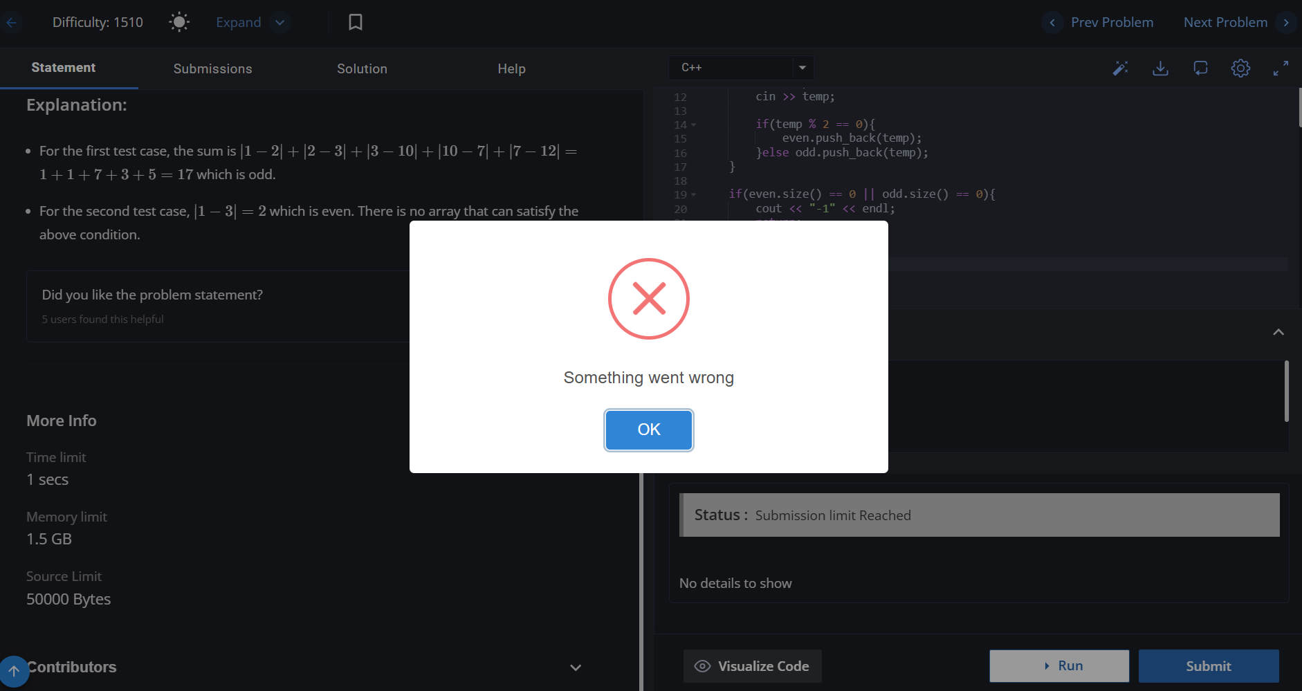 I am writing to report a persistent issue I’ve been facing on the CodeChef platform. For the past 4 days, I’ve been unable to submit any solutions due to a recurring error message stating “Submission limit reached.” This happens regardless of the problem or contest I try to submit to.