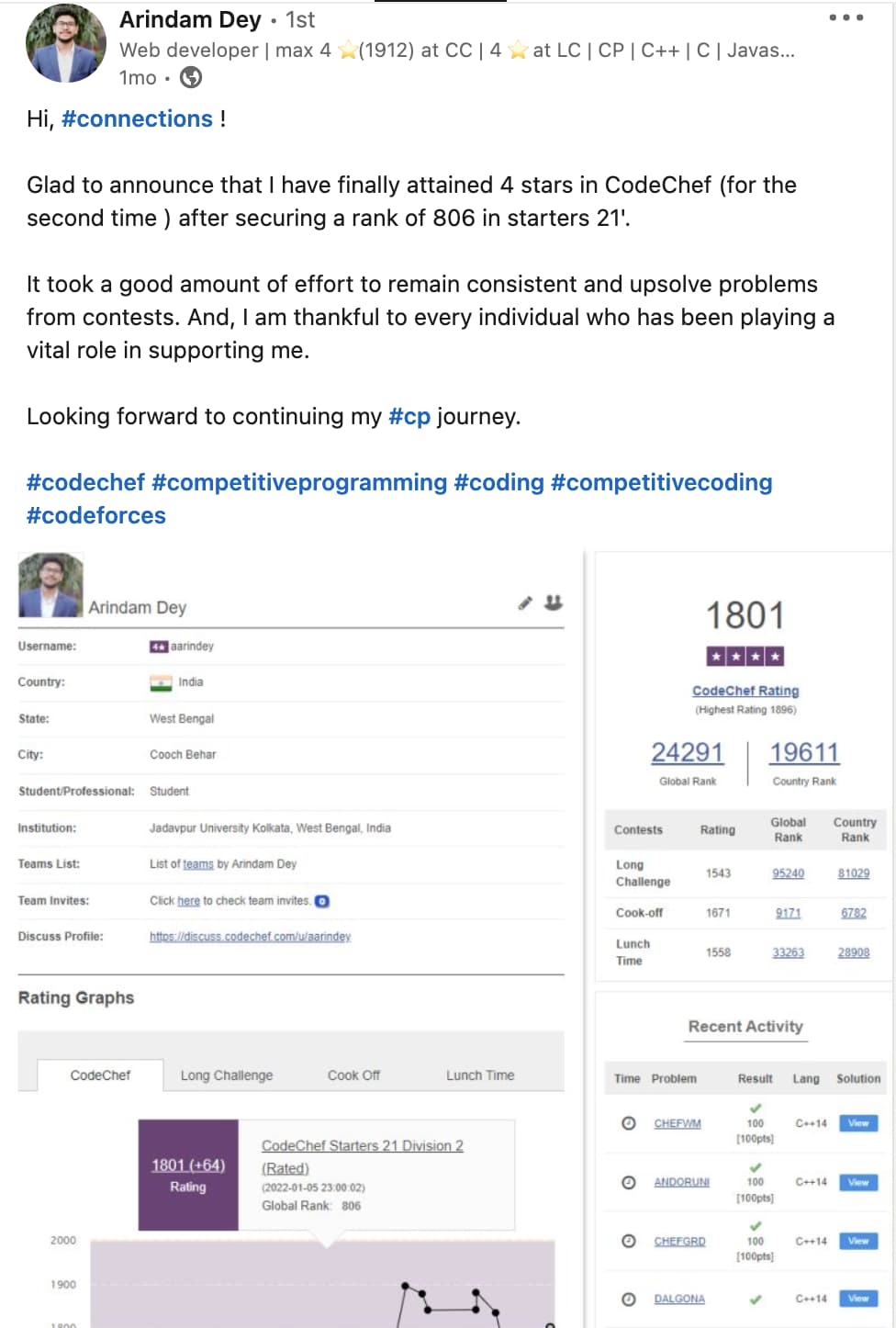 If I would have cheated there then I could have solved all 6 problems and in a very less time . Every question I have solved till now is with my own brain and hardwork not by copying some other’s code. I live in a remote district of maharashtra, from where will I copy when I am giving my contests outside the home as internet speed is very bad inside. I am surrounded by people who even don’t know how to use computer. And it’s very hard to handle both college and dsa practice but I am still handling it but it feels bad when such kind of problems happens even after putting much efforts so please see my evidences and remove these false plagiarism charges