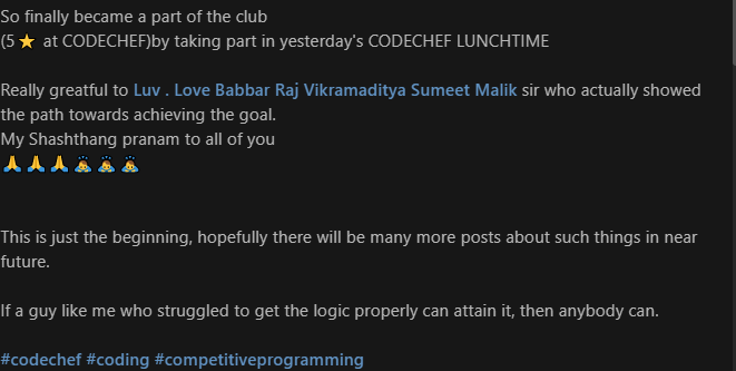 Then this type of people will understand. He has cheated in codeforces too and became expert. Then bragged on linkedin. Sameway he became 5 star on codechef by cheating and again bragged in linkedin.