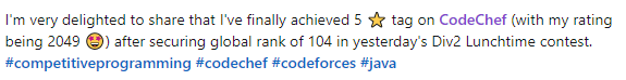 Profile : akshatj07 | CodeChef User Profile for Akshat Jindal | CodeChef (CC chapter member , NIT-J)