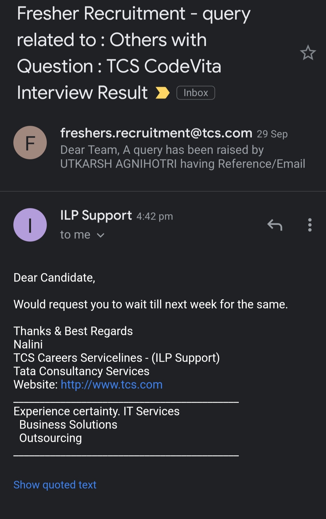 Yesterday morning there was a message in my nextstep portal showing that i have not cleared the selection process but it get disappeared when i logged in the again poral during afternoon and my status changed to candidate batched and no rejection message was there and also i didn’t get any mail regarding selection or rejection now I’m totally confused can anyone help me.