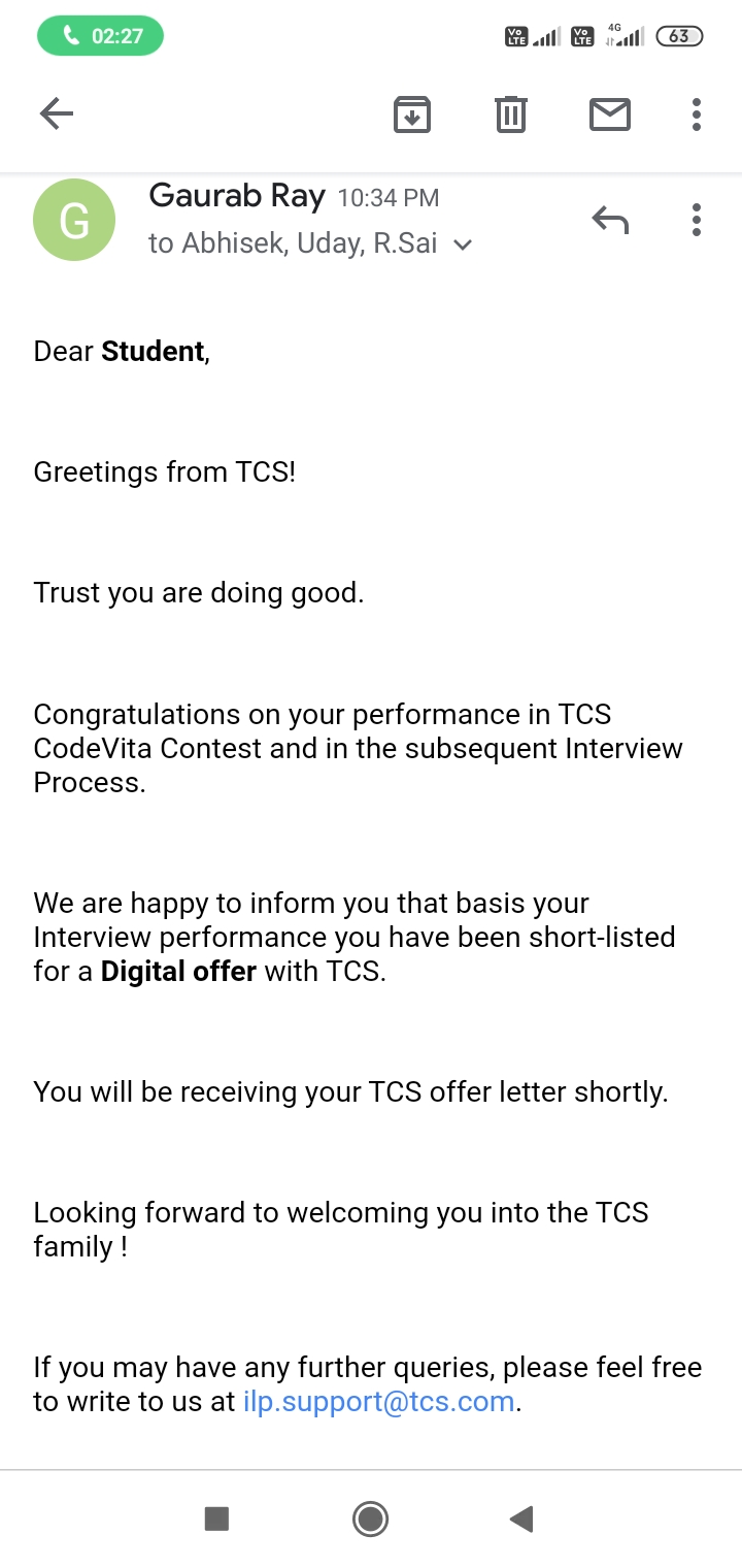 Okk got official mail from TCS for Ninja Offer. Though I knew my results beforehand as I’m from premium college. And I’m from Kolkata region.