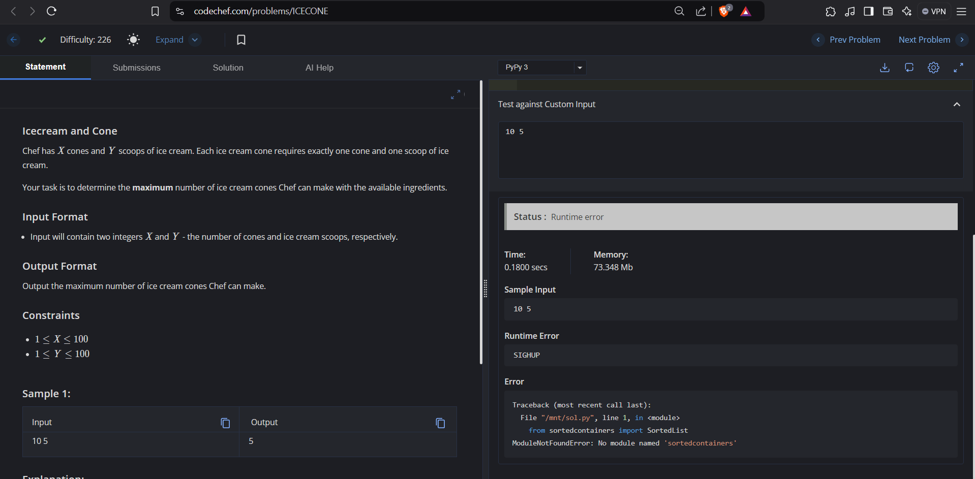 In few problems we could require a data structure which supports insertion and deletion in sorted manner in lesser time. While this is easier to perform in CPP using OrderedSet and OrderedMultiSet, but in python its only possible using library named ‘SortedContainers’, but it is not supported in codechef, please do take action to add the library so that it could benefit python coders.