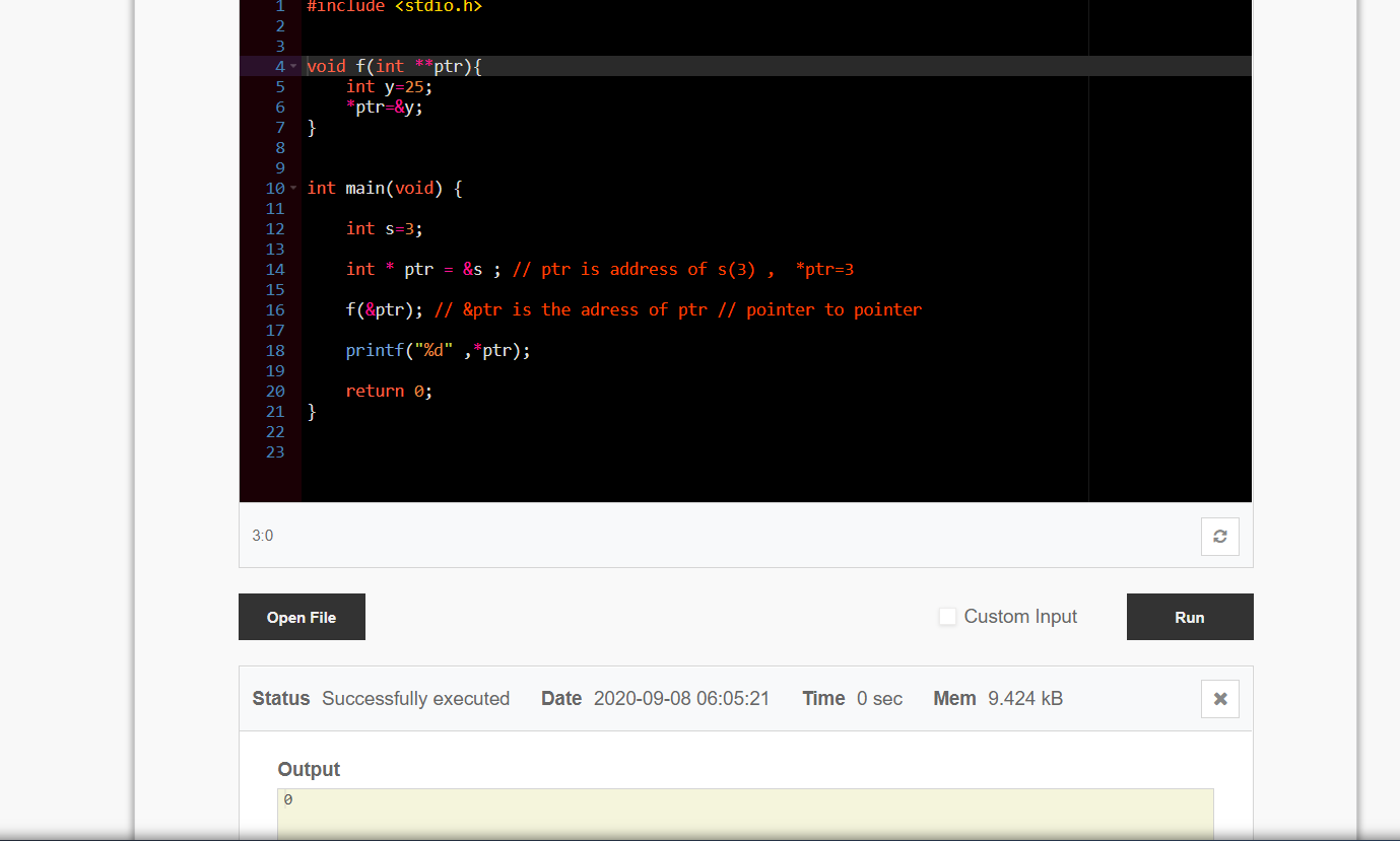 f(&ptr); // &ptr is the adress of ptr // pointer to pointer